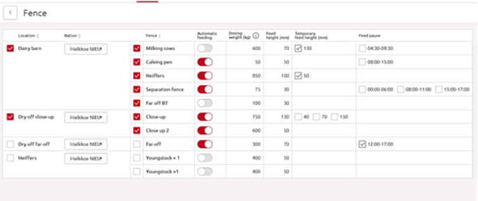 Ration steps for Beef customers: The new fence page offers automatic ration changes based on the animals' age for beef customers. The settings will be visible after activating the toggle of ‘Add ration steps’.
